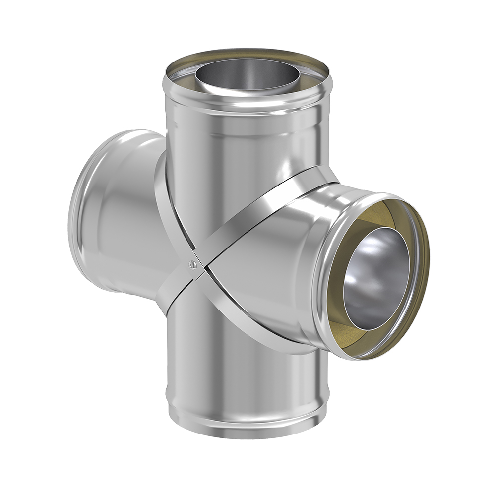 Сендвич-четверник в конструкции дымохода применяется для подключения отопительных систем к дымоходу.