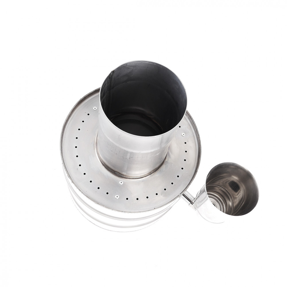 Парогенератор на трубе устанавливается на стартовый участок дымохода, выполнен целиком из нержавеющей стали марки AISI 439.