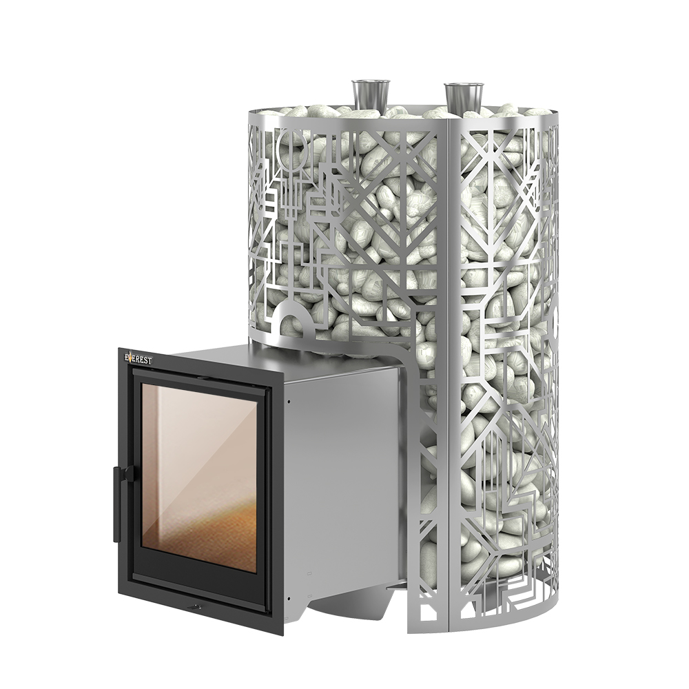 Внешний тепловой контур образован открытой каменкой в виде цилиндрической сетки, вмещающей в себя 170 килограммов камней. Сетка сделана из стали, в новом минималистичном дизайне EVEREST.