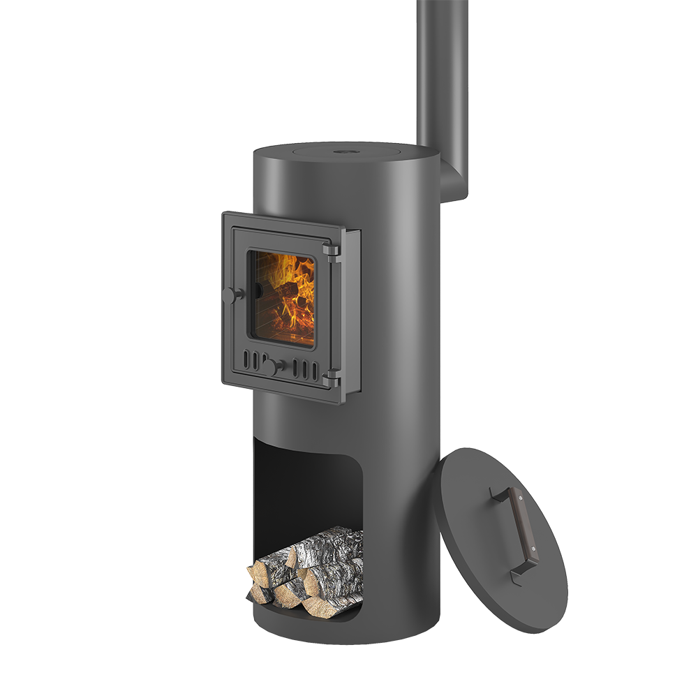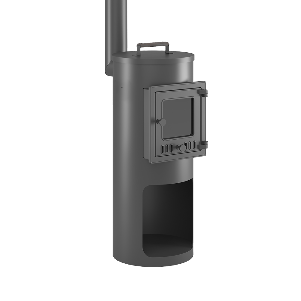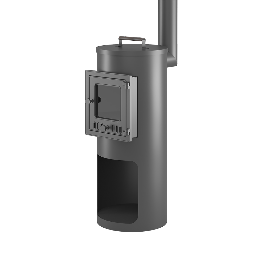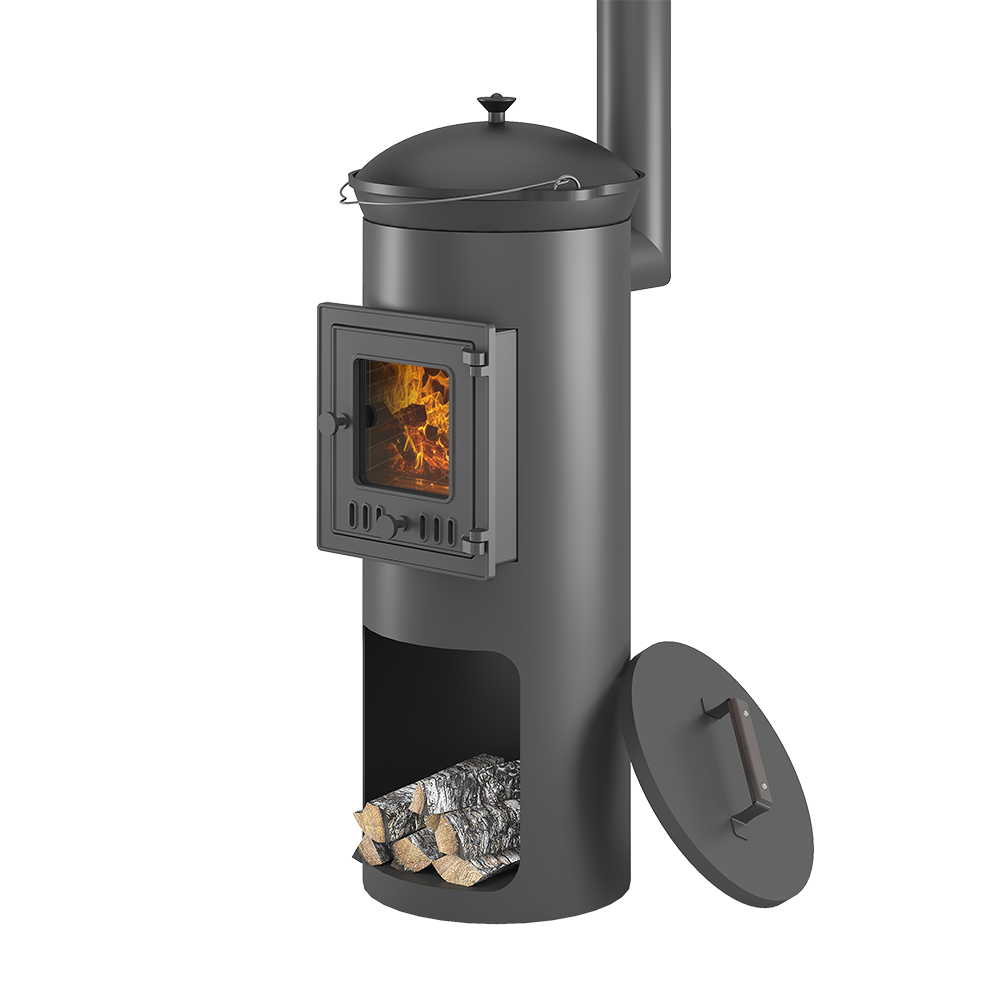 Печь под казан ОТ ШЕФА имеет цилиндрическую форму, с удобной чугунной дверью и конфорками из чугуна. Аккуратная, компактная и эстетичная печь рассчитана на готовку или разогрев еды.