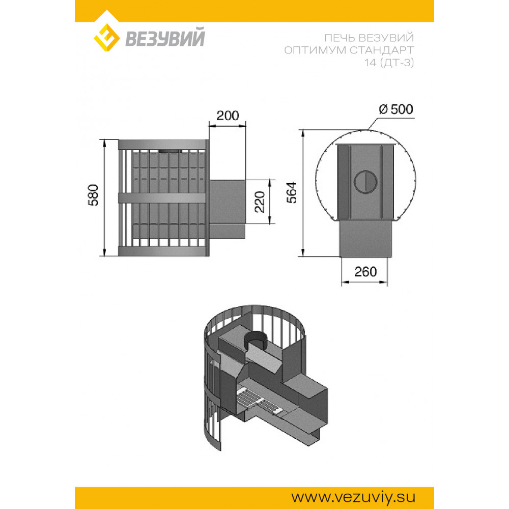 Технические характеристики Печь ВЕЗУВИЙ Оптимум Стандарт 14 (ДТ-3С)