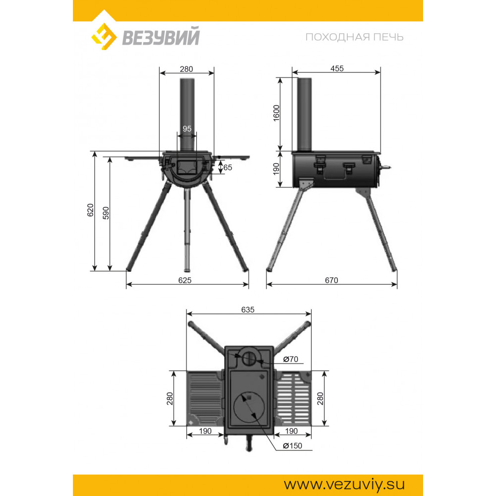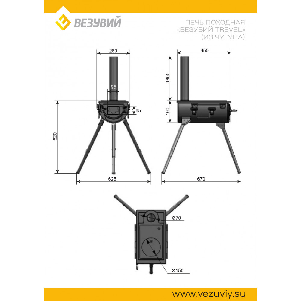 Технические характеристики Печь Везувий Travel (из чугуна)